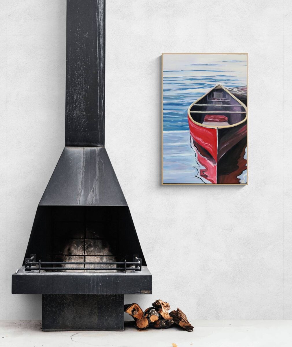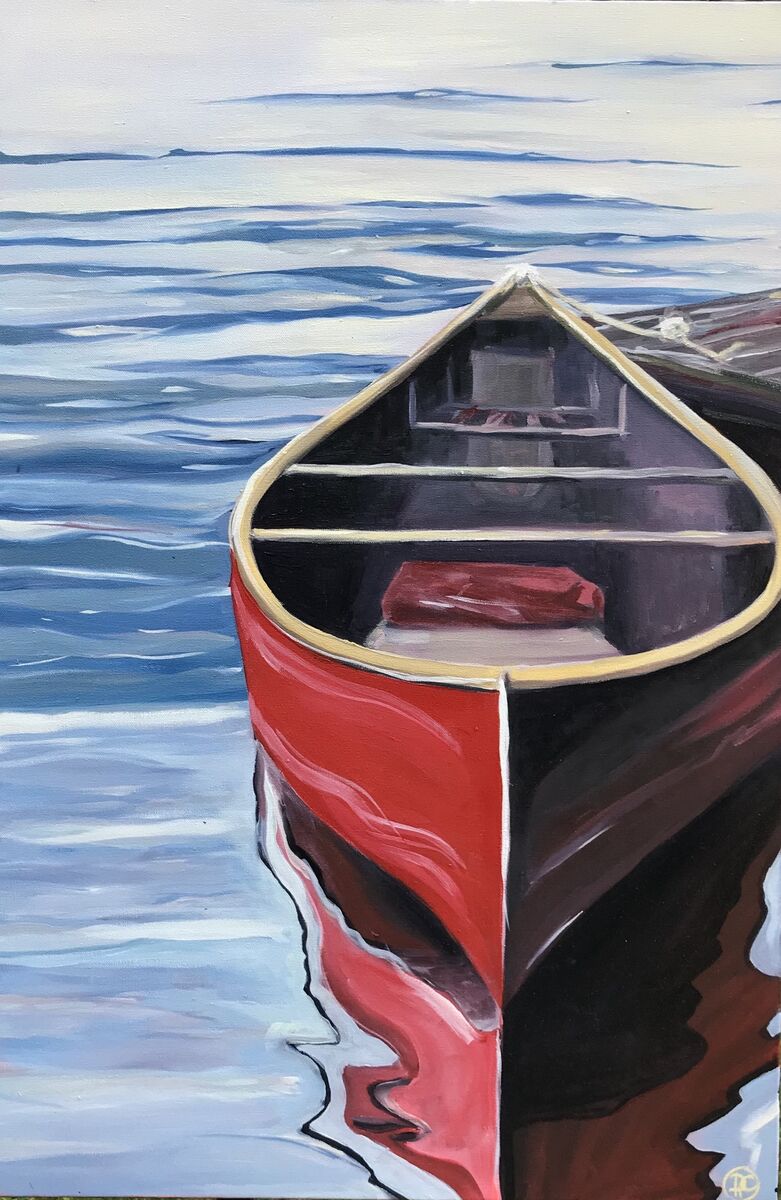 Red Canoe tied up to a dock