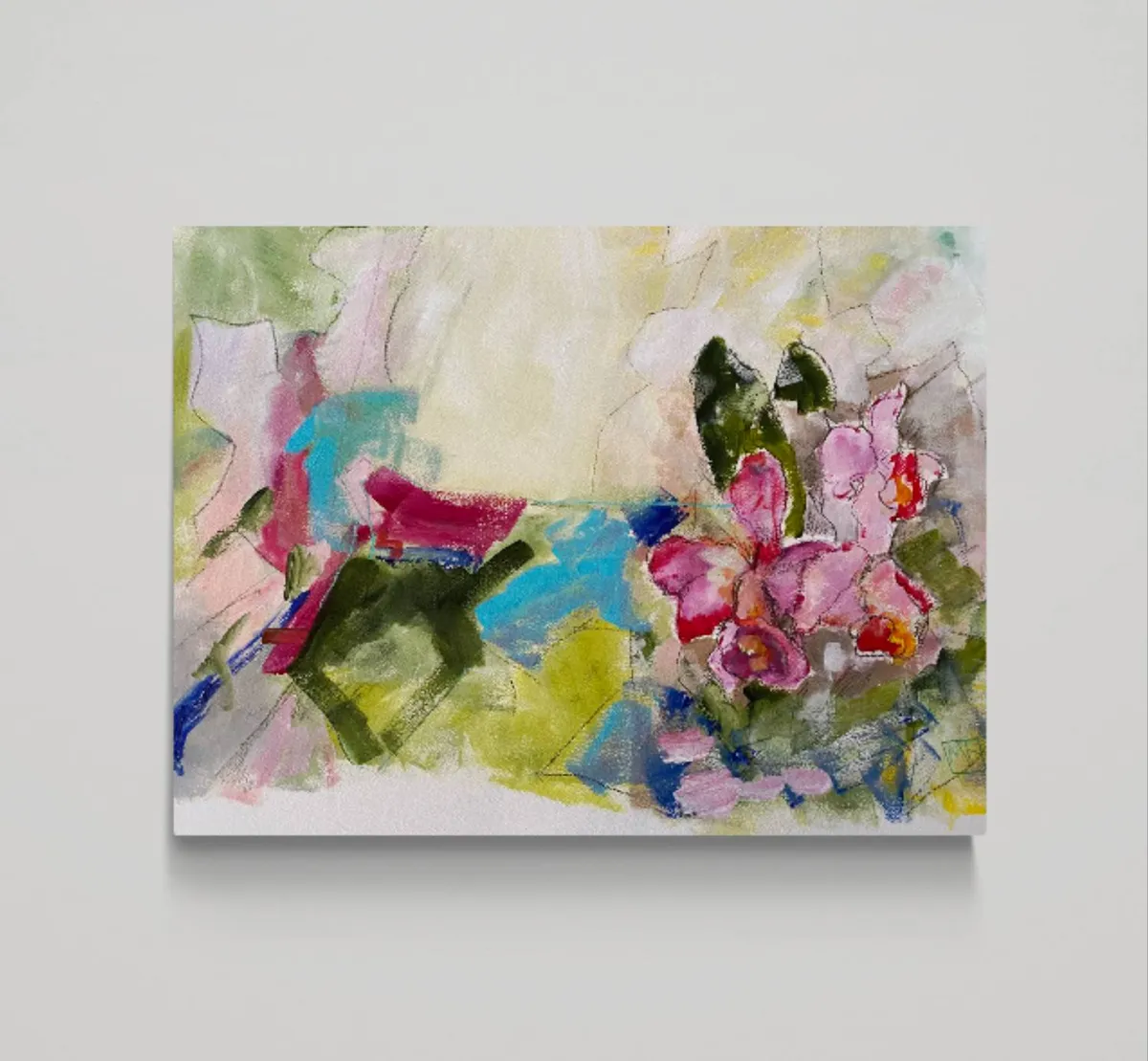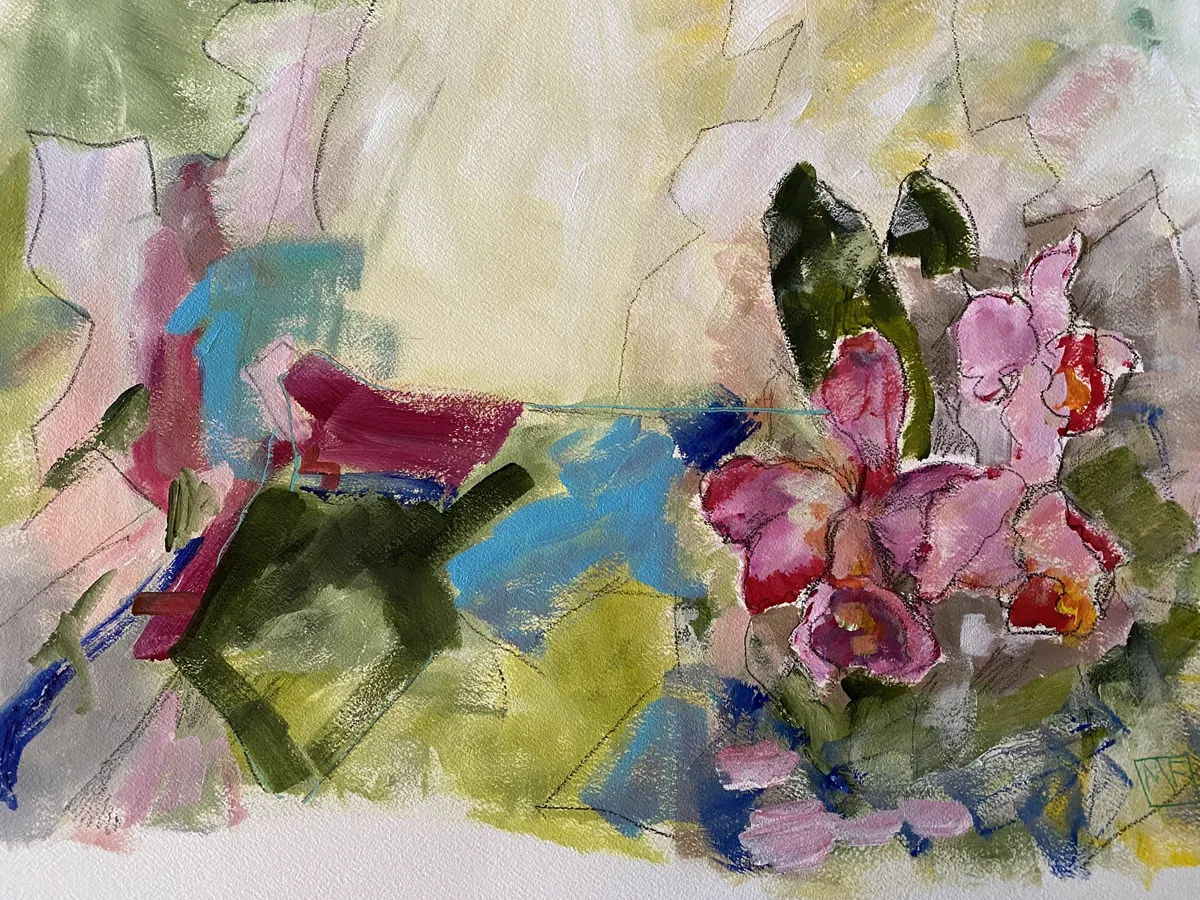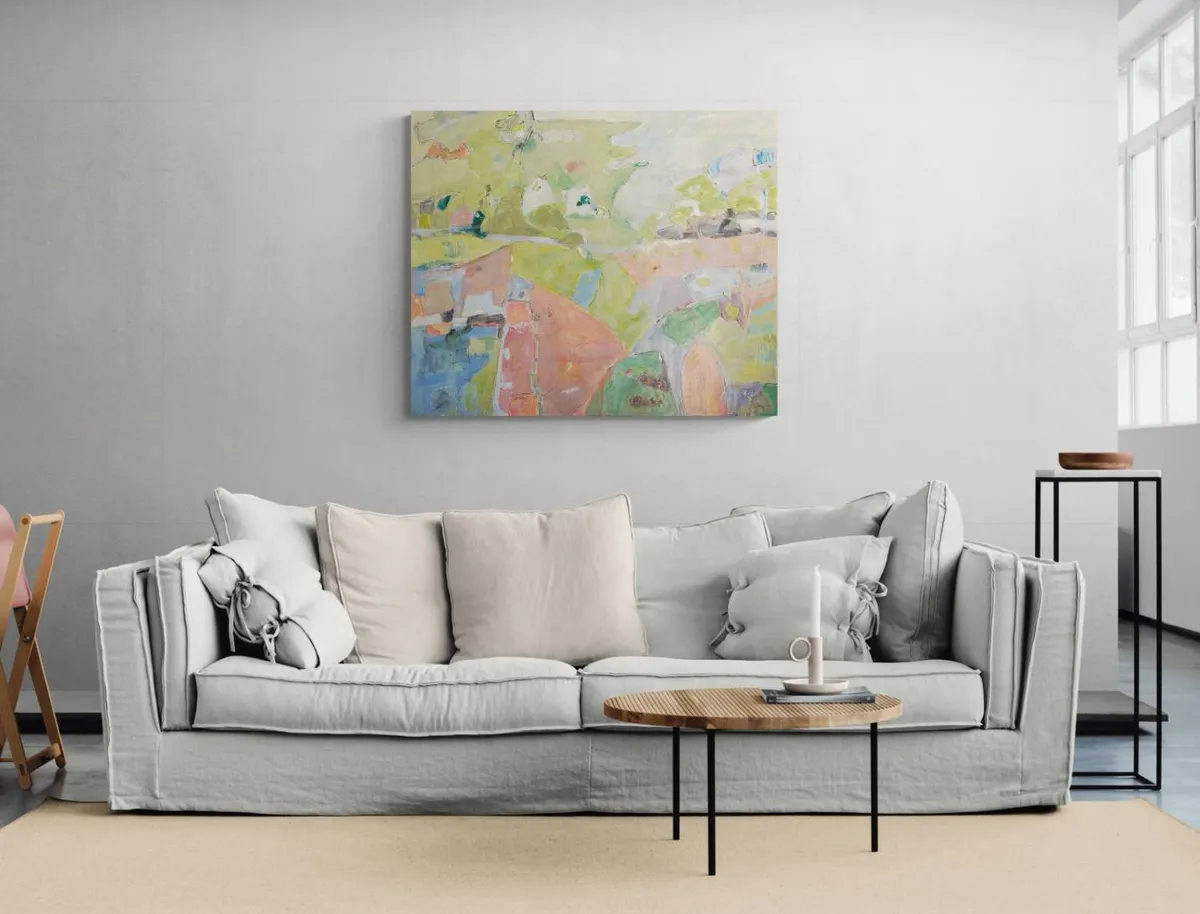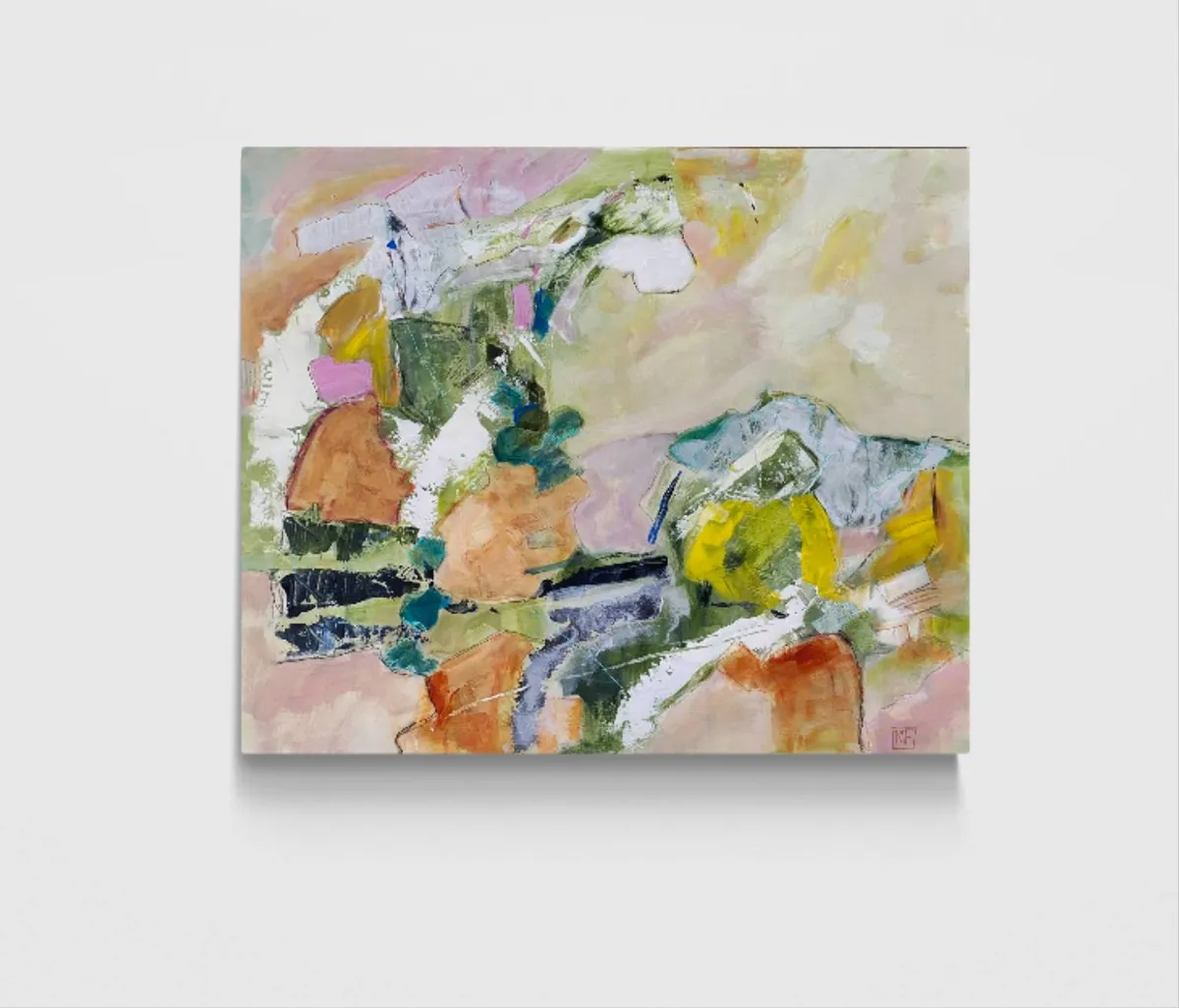 This acrylic painting, accented with china pen, on cradled board explores the interplay between memory and place, drawing inspiration from time spent in Arashiyama, outside Kyoto. Known for its bamboo groves, forested mountains, and cultural landmarks like temples, shrines, and villages, Arashiyama exists at the intersection of nature and human presence—a duality I wanted to explore through abstraction. It was awarded Honorable Mention Teravarna 10th Open Art Competition. Using a soft, layered palette of greens, muted pastels, and earth tones, the work avoids literal representation, instead emphasizing the fluidity of memory and how we reconstruct landscapes in our minds. The addition of china pen linework introduces dynamic, gestural marks that suggest pathways, boundaries, and fleeting details, speaking to the fragmented, layered way we experience and remember spaces. This painting aligns with a contemporary focus on the relationship between environment and human intervention, questioning the boundaries between natural and cultural landscapes. The abstracted forms and interconnected shapes invite viewers to navigate the work as they would a map—imagining their own movement through the space. Ultimately, the piece examines how personal and collective histories inform our connection to landscapes, offering a space for reflection on the coexistence of tradition, nature, and modern life.